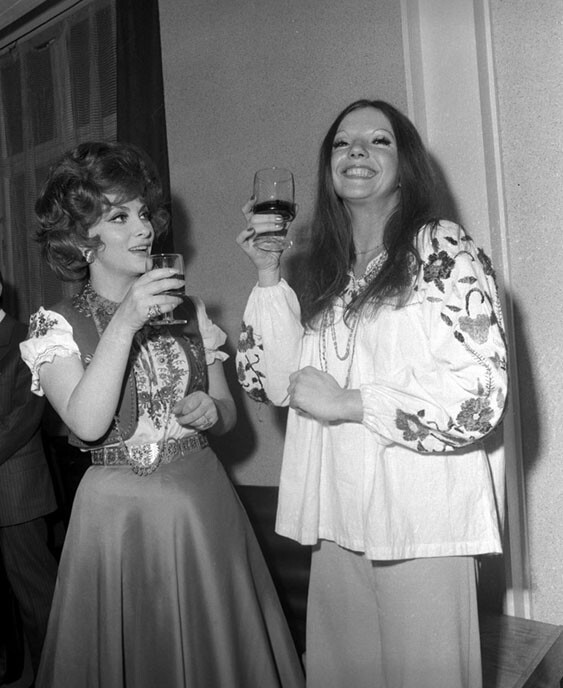December 15, 1972. Gina Lollobrigida and Hungarian singer Sarolta Zalatnay in Budapest.