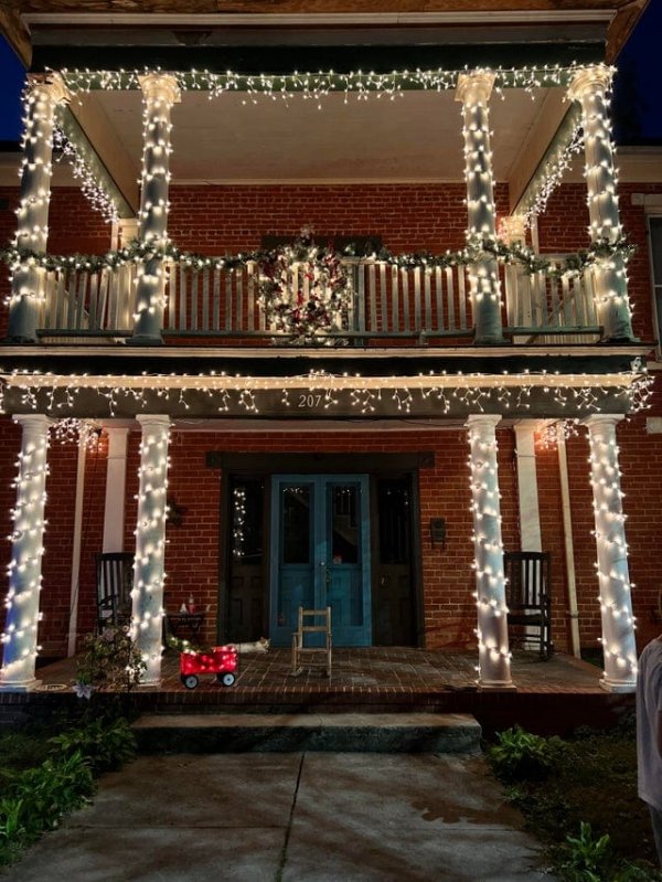 “Walking around the neighborhood, I saw a house completely decorated with garlands”