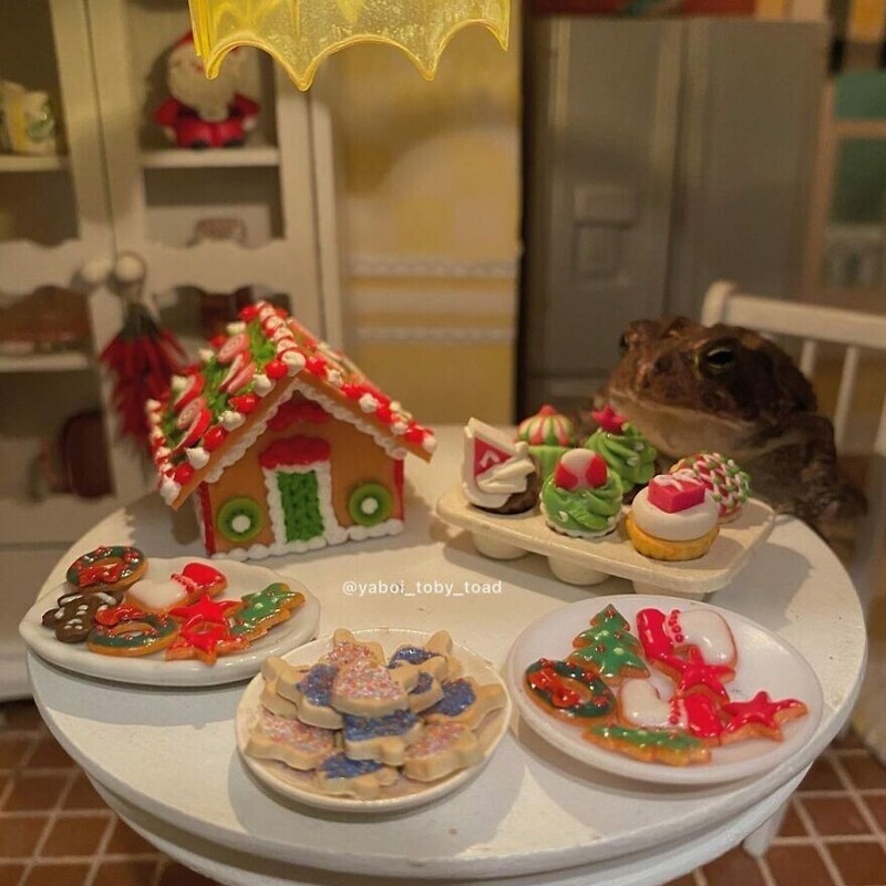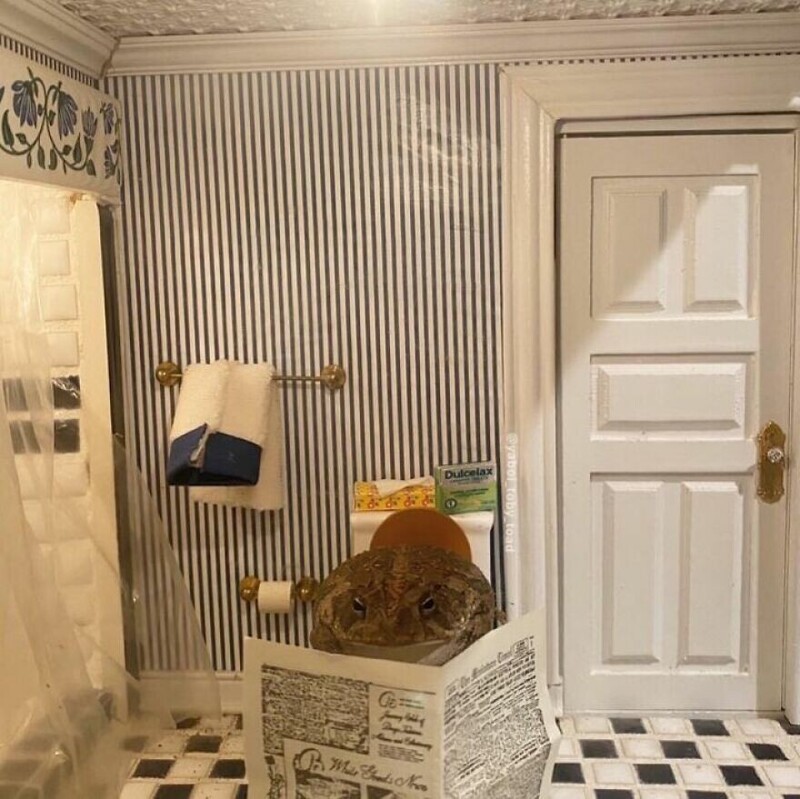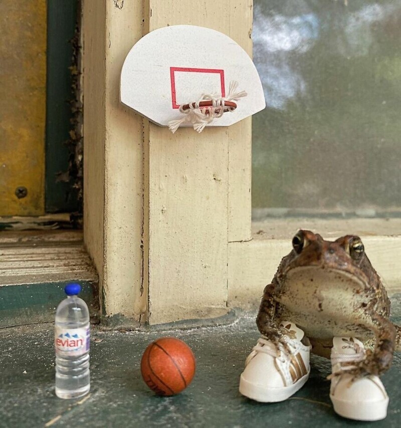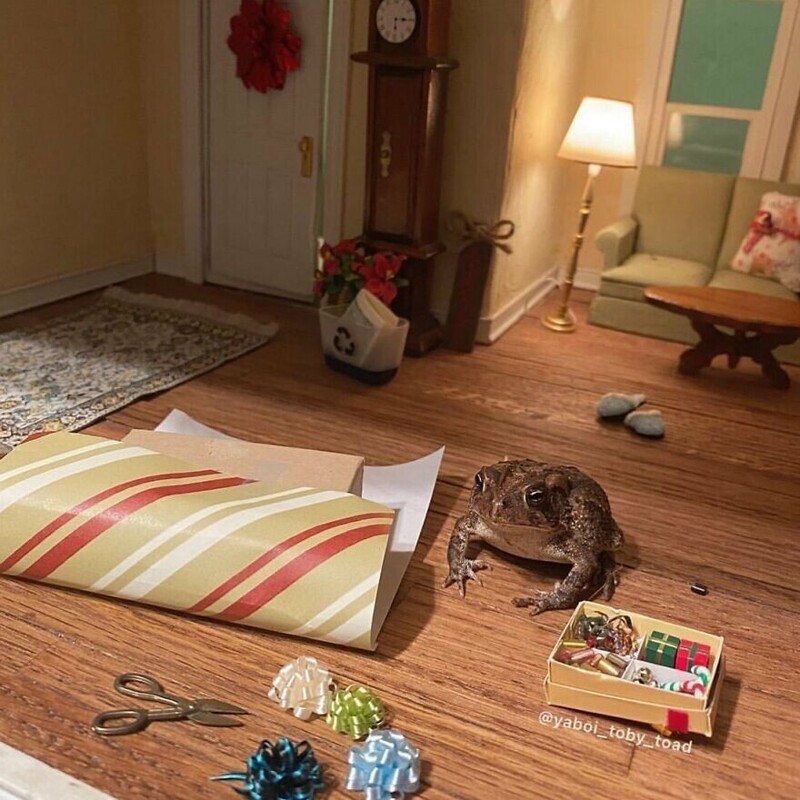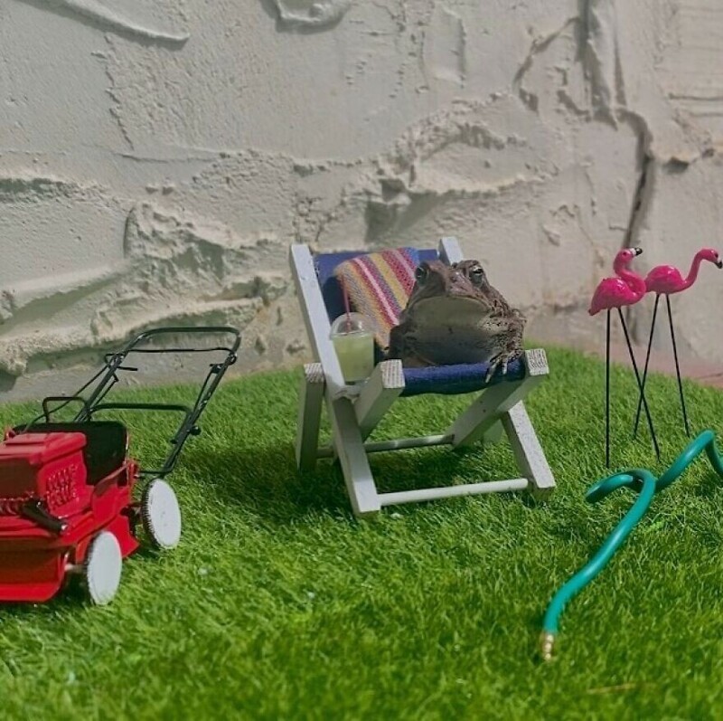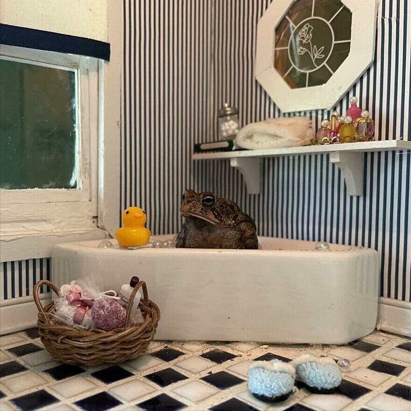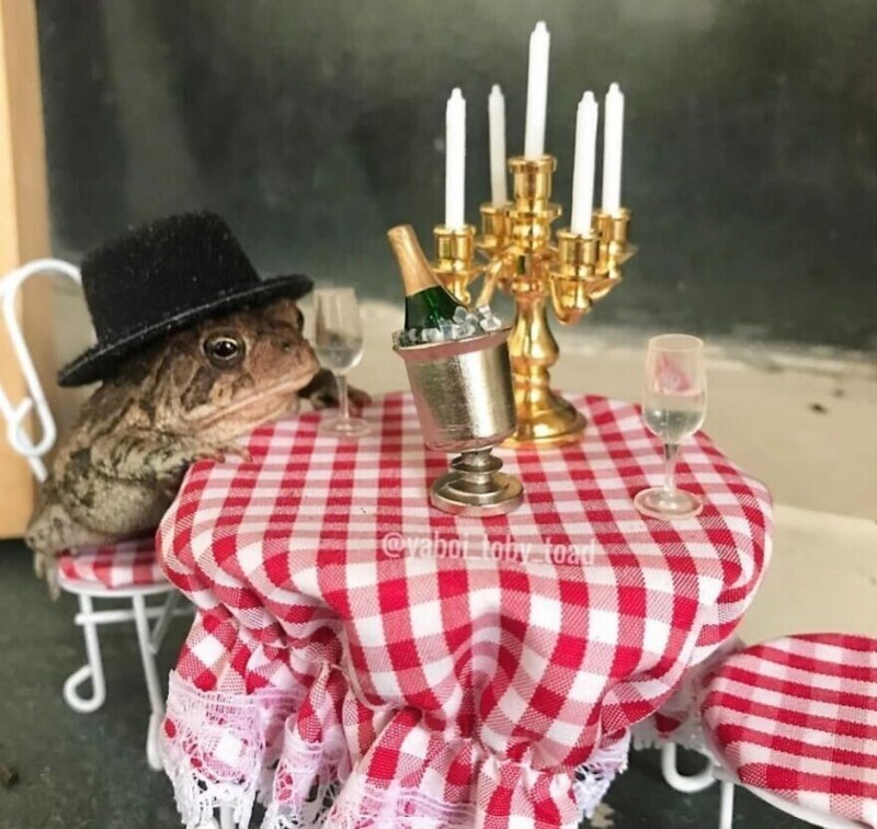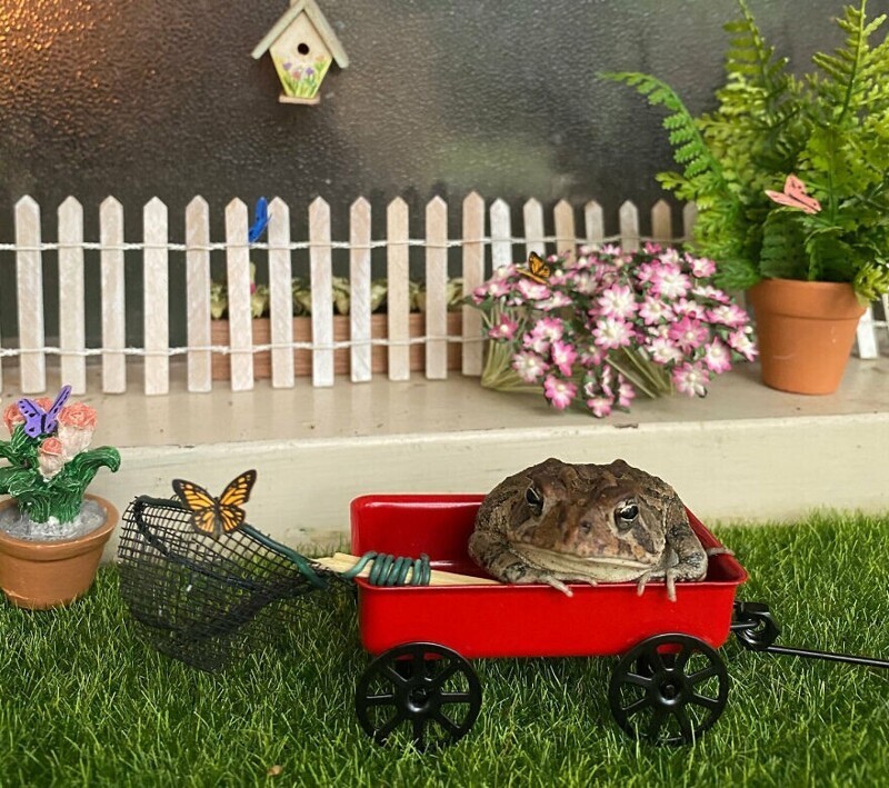A resident of Florida, USA, has an unusual pet - a toad nicknamed Toby. His owner is a photographer, and one day she decided to attach a toad to creativity. Turning on fantasy, I created a whole project. She is photographs Toby in different settings using a dollhouse and various items from it.