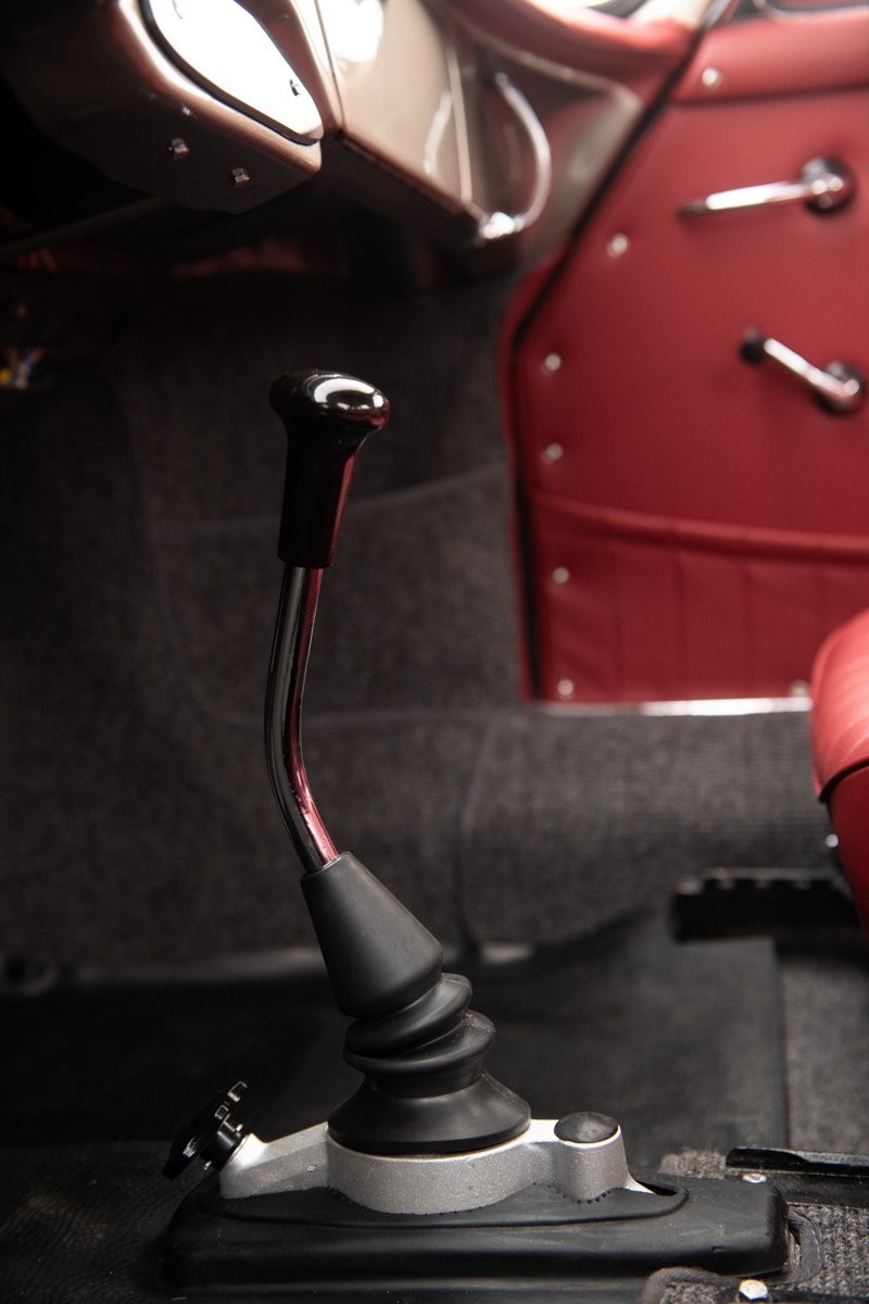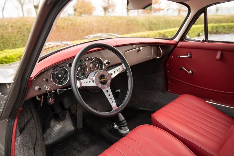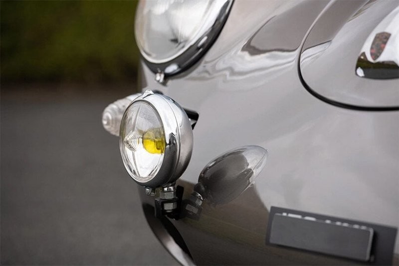 The two-door received new body panels, but retained the original engine and transmission. Part of the suspension and brake elements had to replaced, which had a positive effect on driving performance. In addition the car completely lost its chrome parts and got a custom interior with Scottish Muirhead leather upholstery, new floor mats and restored original instrumentation scales.