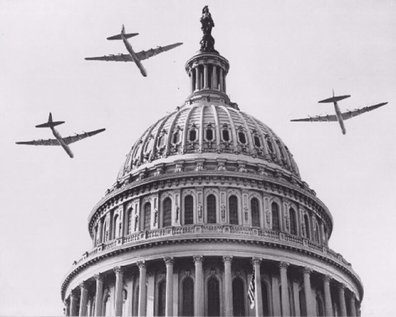 A Convair B-36 flies over the Capitol at the inauguration of Harry S. Truman on January 20, 1949
