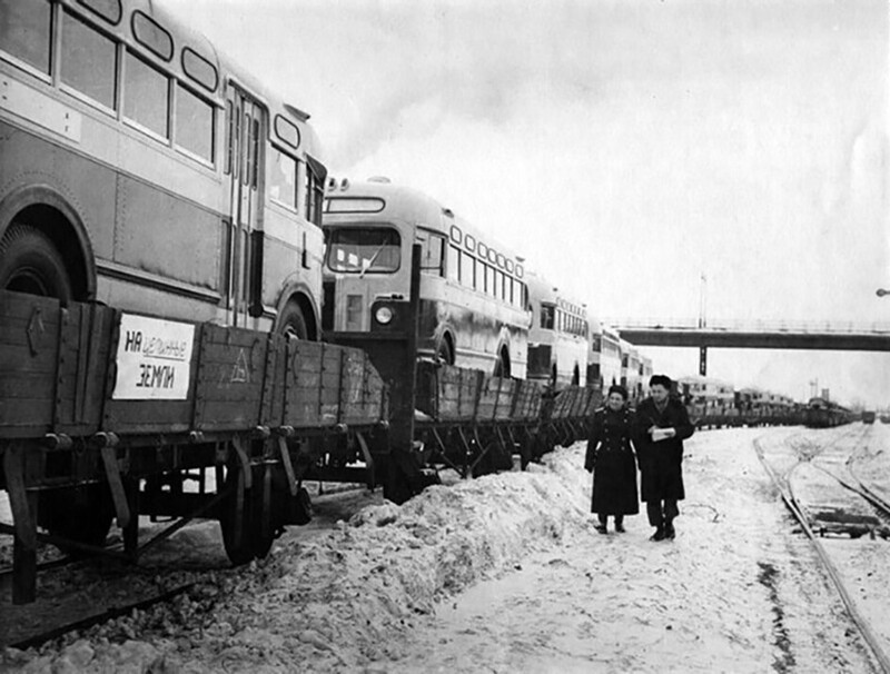 Sending ZIS-155 buses to virgin lands, 1950s, USSR