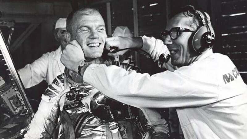 American astronaut John Glenn aboard Mercury-Atlas 6, 20 February 1962 circled the globe three times. Became the first American third person in the world after Soviet cosmonauts Yuri Gagarin and German Titov, who made an orbital space flight.