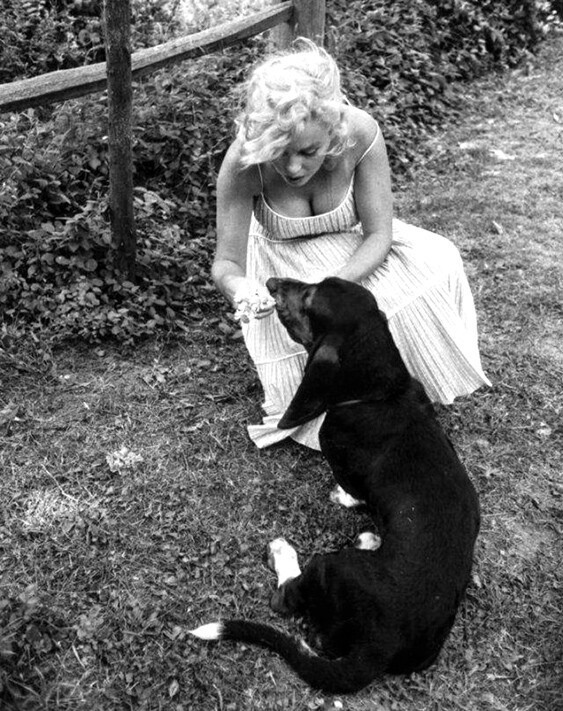 Marilyn Monroe with his faithful dog (synonymous - dog) Hugo, 1957