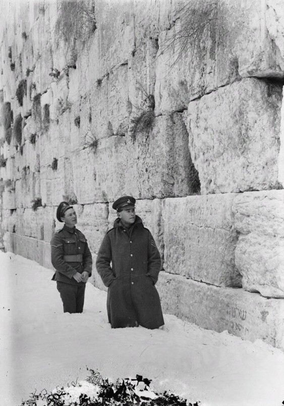 British soldiers stuck in the snow at the Wailing Wall, Jerusalem, February 1921