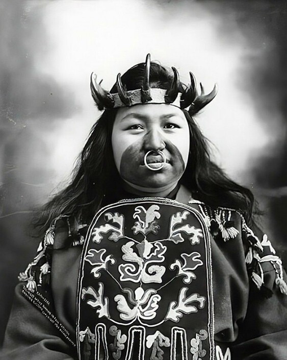 A representative of the Tlingit Indian people named Kau Klaa in a traditional costume, 1906