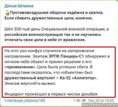 - Severe Russian air defense does not shoot down missiles, but their helicopters