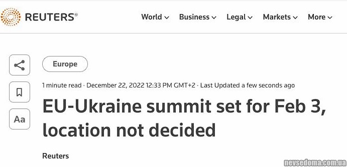 - At the beginning of February 2023, a Ukraine-EU summit will be held with the participation of Volodymyr Zelensky, President of the European Council Charles Michel and Head of the European Commission Ursula von der Leyen, — Reuters.