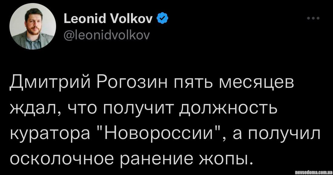 Dmitry Rogozin himself announced this. He also added that he would return to the war zone as soon as he recovered. Is it to have already finished off for sure?