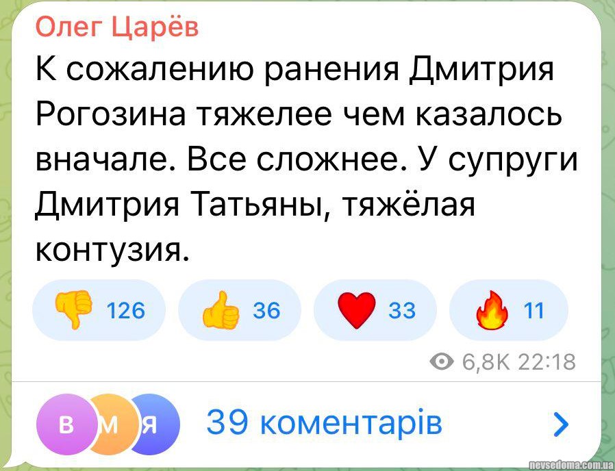 - Rogozin's condition deteriorated sharply: his injury turned out to be more serious