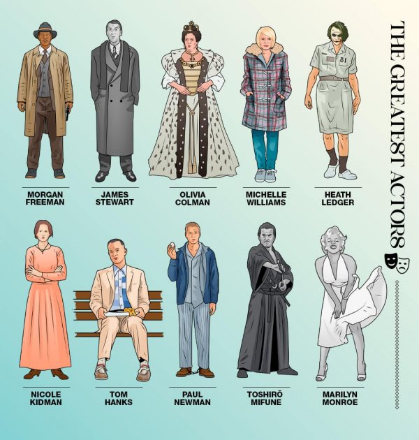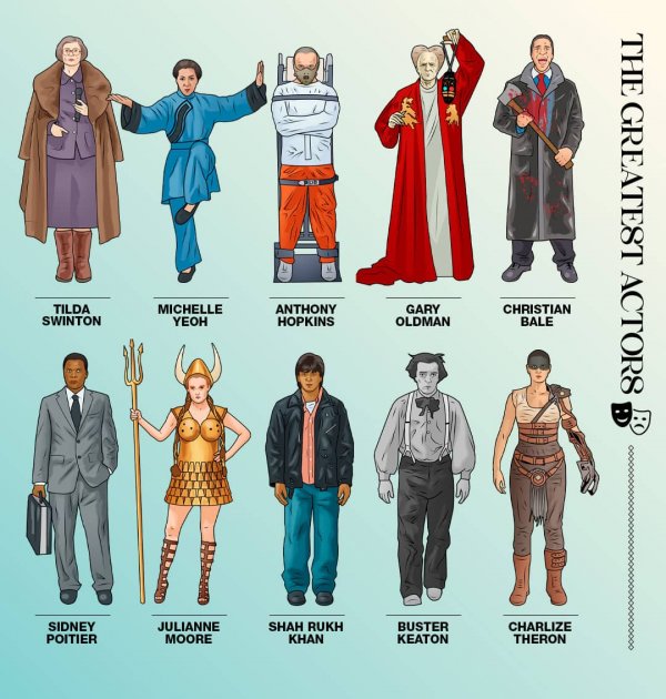The authoritative British edition of Empire made the TOP-50 of the best actors at all times, portraying each in their most famous film image. The list was compiled by voting among thousands magazine audience. And the TOP turned out to be very controversial! As, in fact, all such lists. Many people did not like the dominance of English-speaking actors, as well as the fact that the list included very young and inexperienced actors who look very modest against the background of the masters of cinema. It is important to note that there is no ranking of places from fiftieth to first, just a listing.