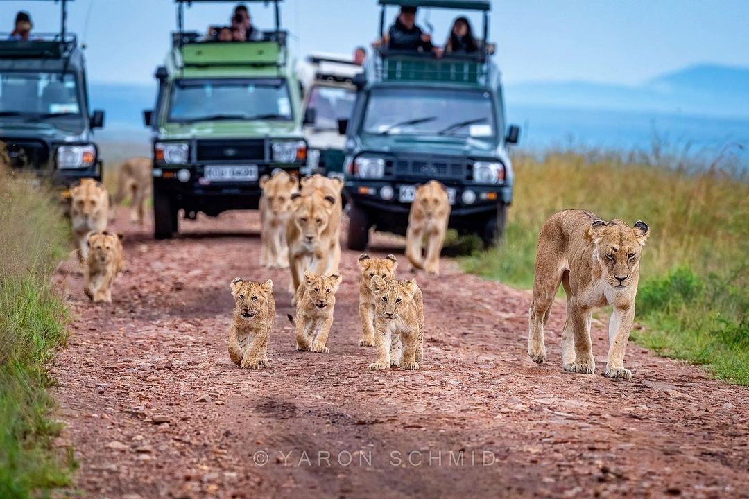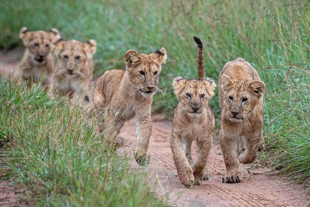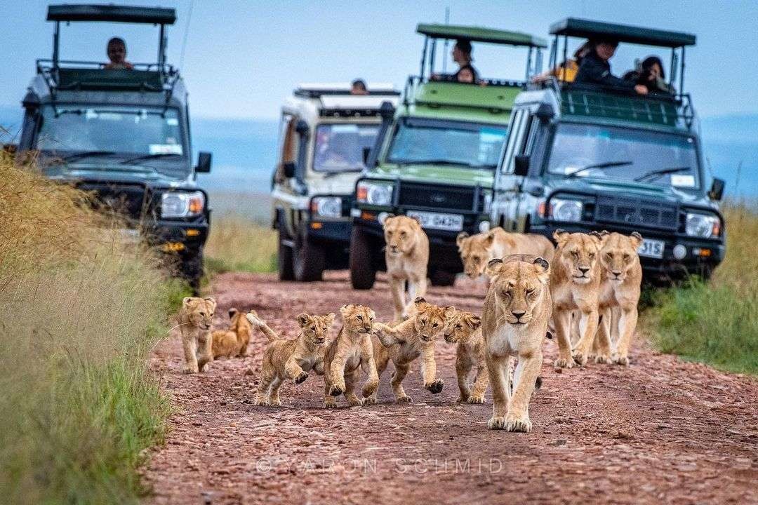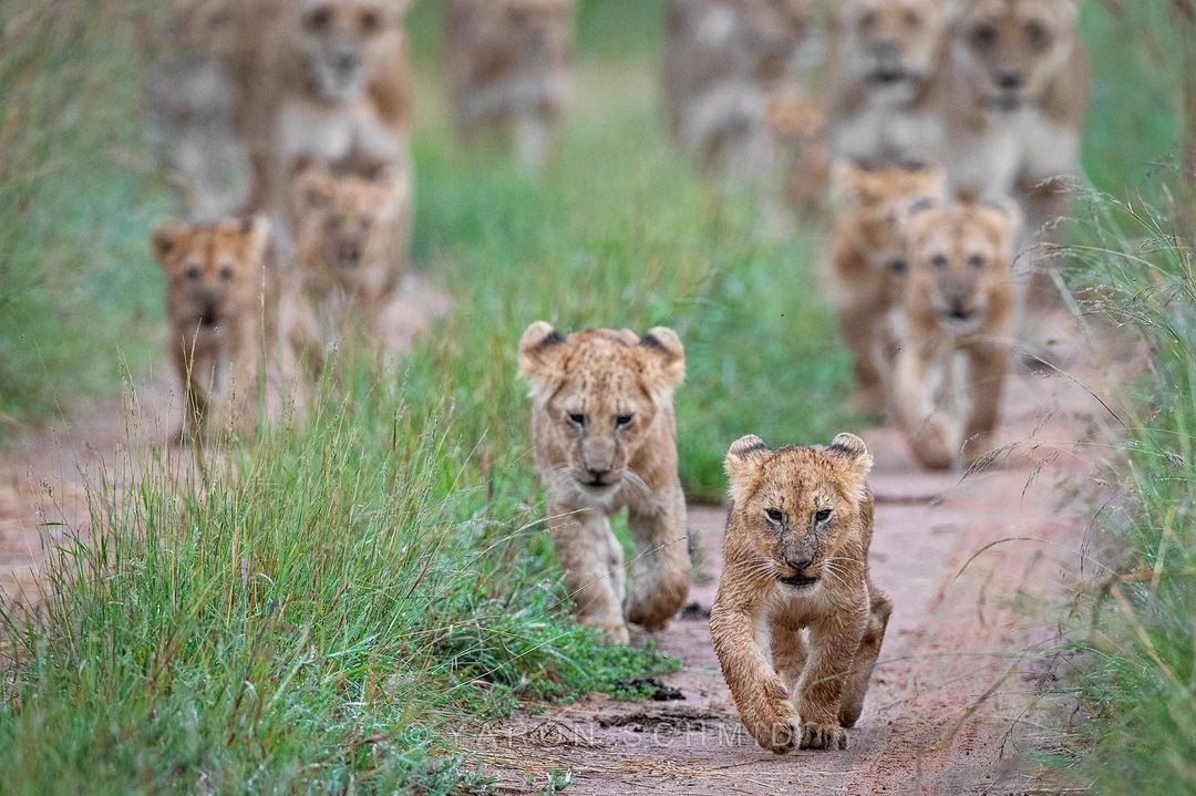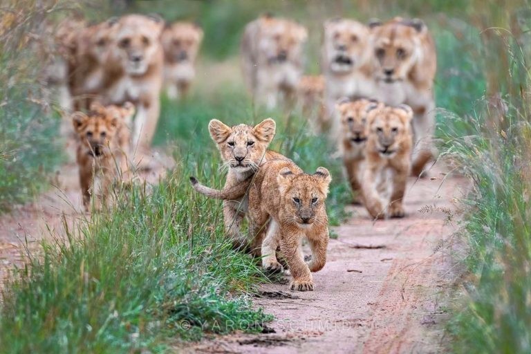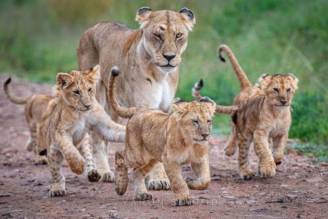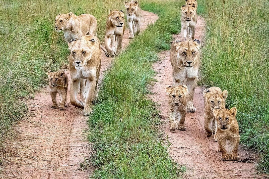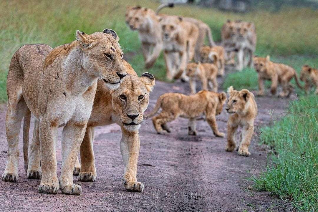 The lionesses of the Black Rock pride took the cubs out for a morning walk