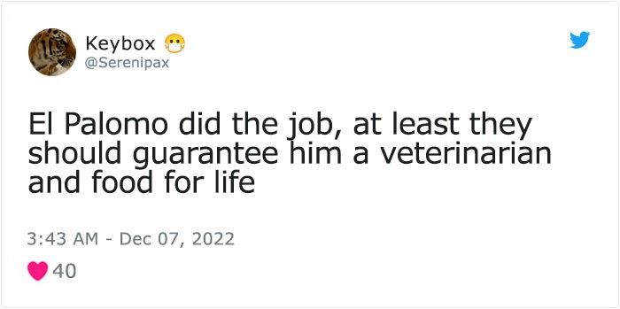 "Palomo completed the task, they now have to at least provide him with a veterinarian and food for life."