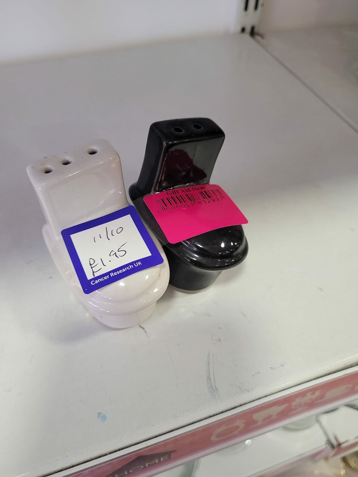 Salt and pepper shakers in the form of toilet bowls