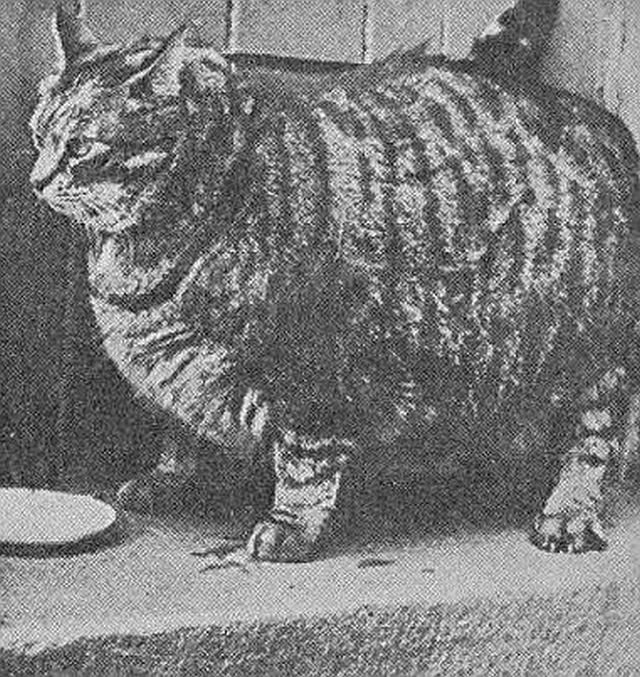 Β 1950 Guinness World Records named Klaus from San Francisco the fattest cat. At 8 years old, he weighed 18 kg (39.7 lb) and was 91 cm (35.2 inches) around the waist.