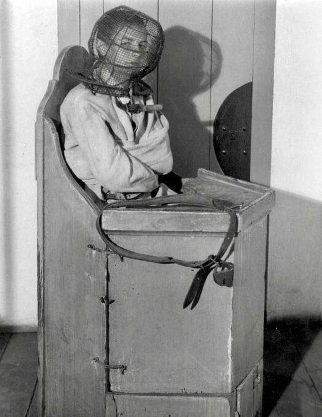 Crazy chair in a Dutch psychiatric hospital, 1938 It was used to subdue the most violent and uncontrollable patients.