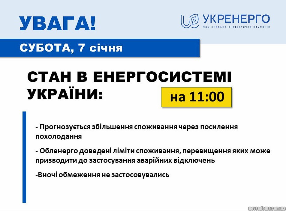 - Thanks to weekends and holidays, electricity consumption in the country is lower than the day before, even with a significant drop in temperature, — "Ukrenergo".