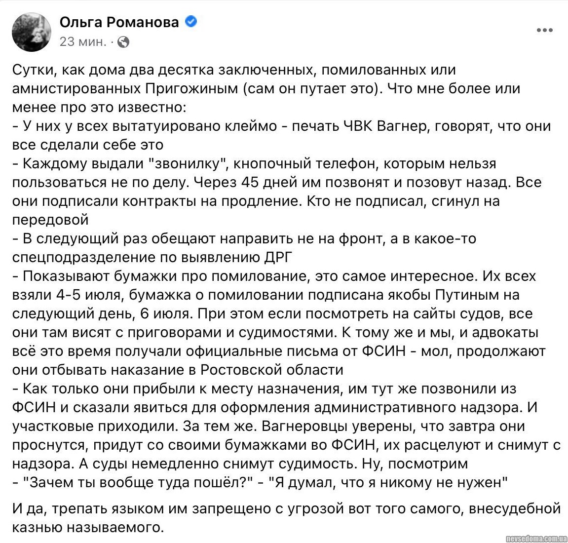- The head of "Seated Rus'" Olga Romanova wrote what is wrong with the release of prisoners from PMC Wagner