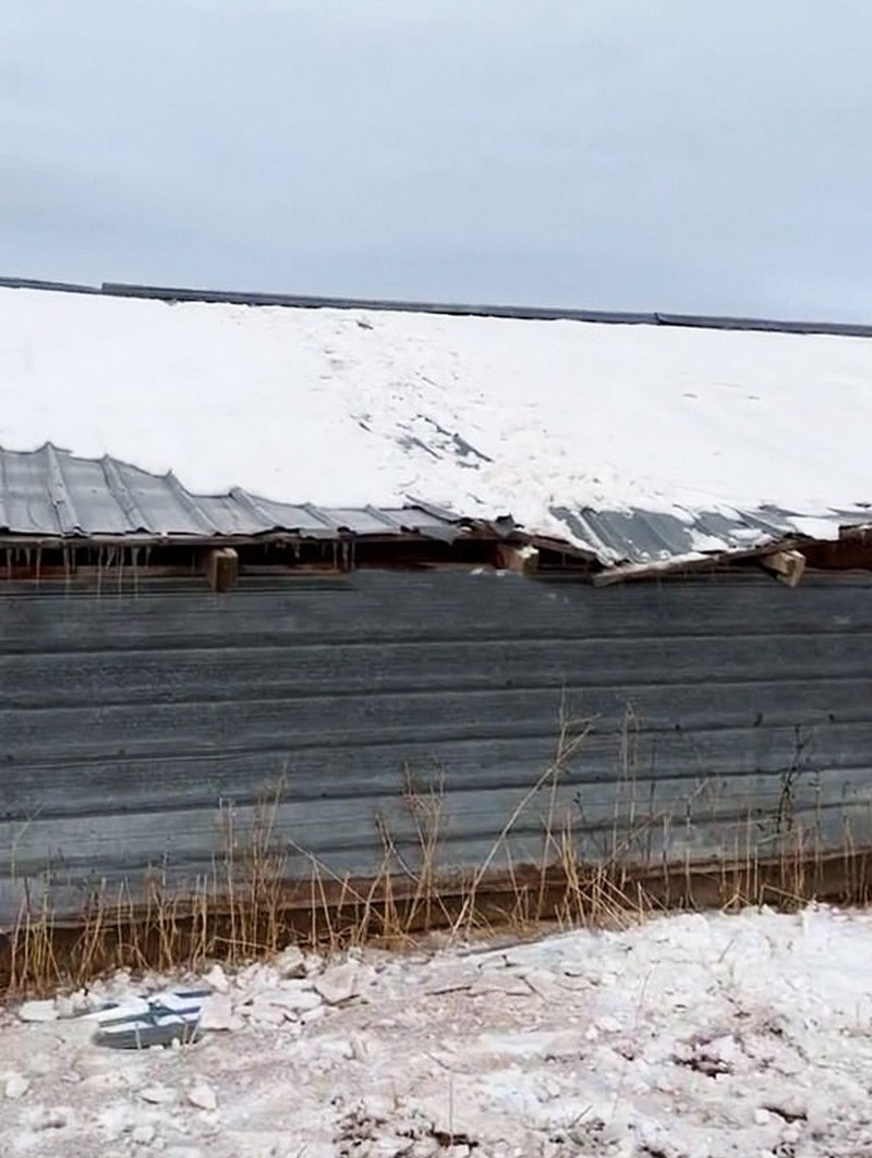 Hoofprints that a cheeky cow left on the snow-covered roof of a barn
