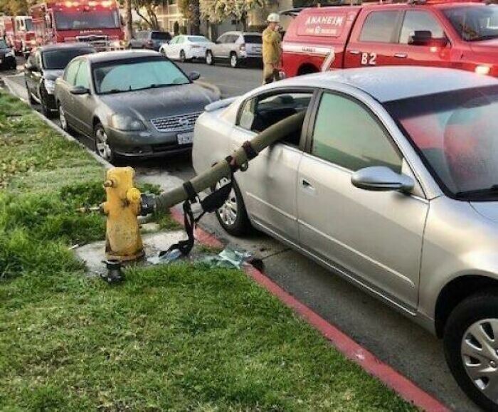 13. This is what happens when you park in front of a fire hydrant and a fire starts.