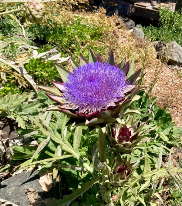 This is how an artichoke blooms if it is not plucked in time.
