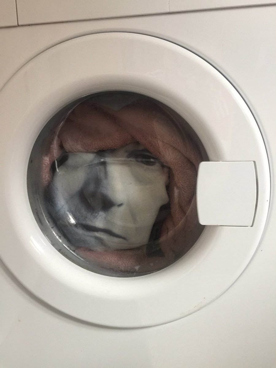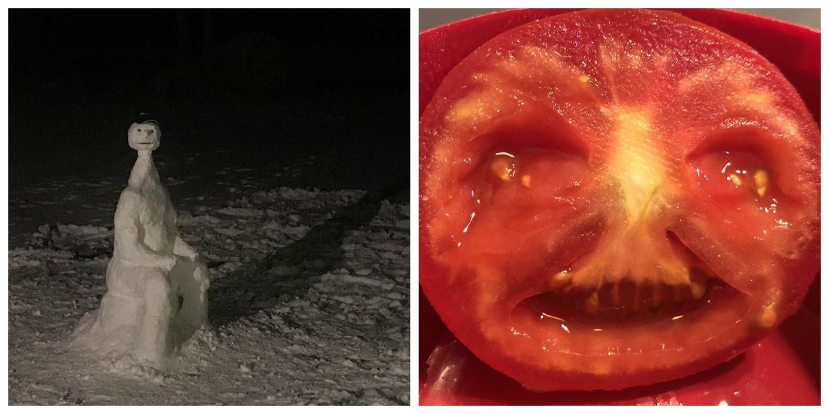A creative way to scare passers-by half to death. It's good that serene faces will melt along with the snowdrifts.