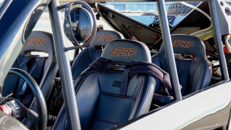 However, the interior of the model is almost completely open, and from the glasses - there is only wind. Four bucket-shaped seats with sports seat belts.
