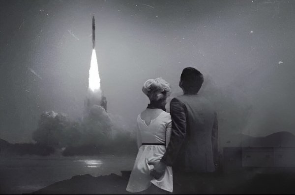 Romance! A couple watching the launch of the Apollo 8 rocket, 1968