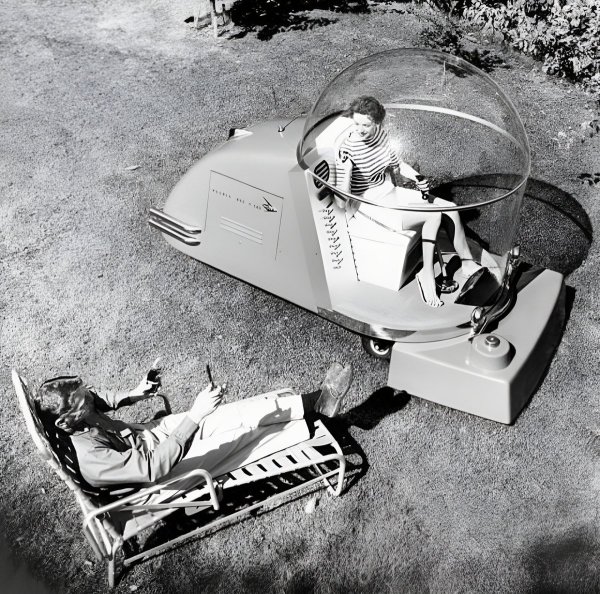 Air-conditioned lawn mower, 1957 Perhaps on such lawn mower could not only mow the grass, but also comfortably in go to the nearest store.
