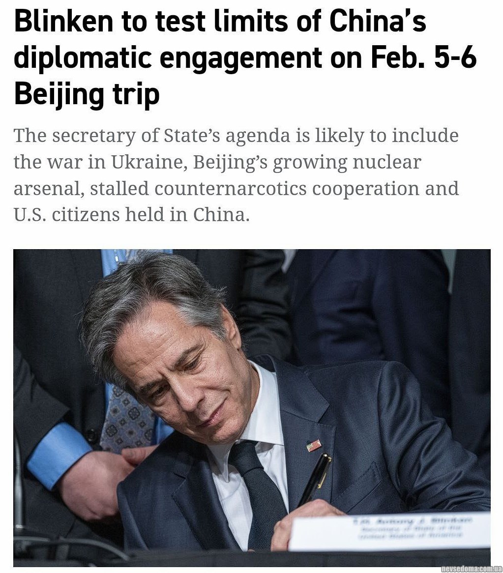 - US Secretary of State Blinken will visit China on February 5-6, where Ukraine will also be discussed, — Politico.