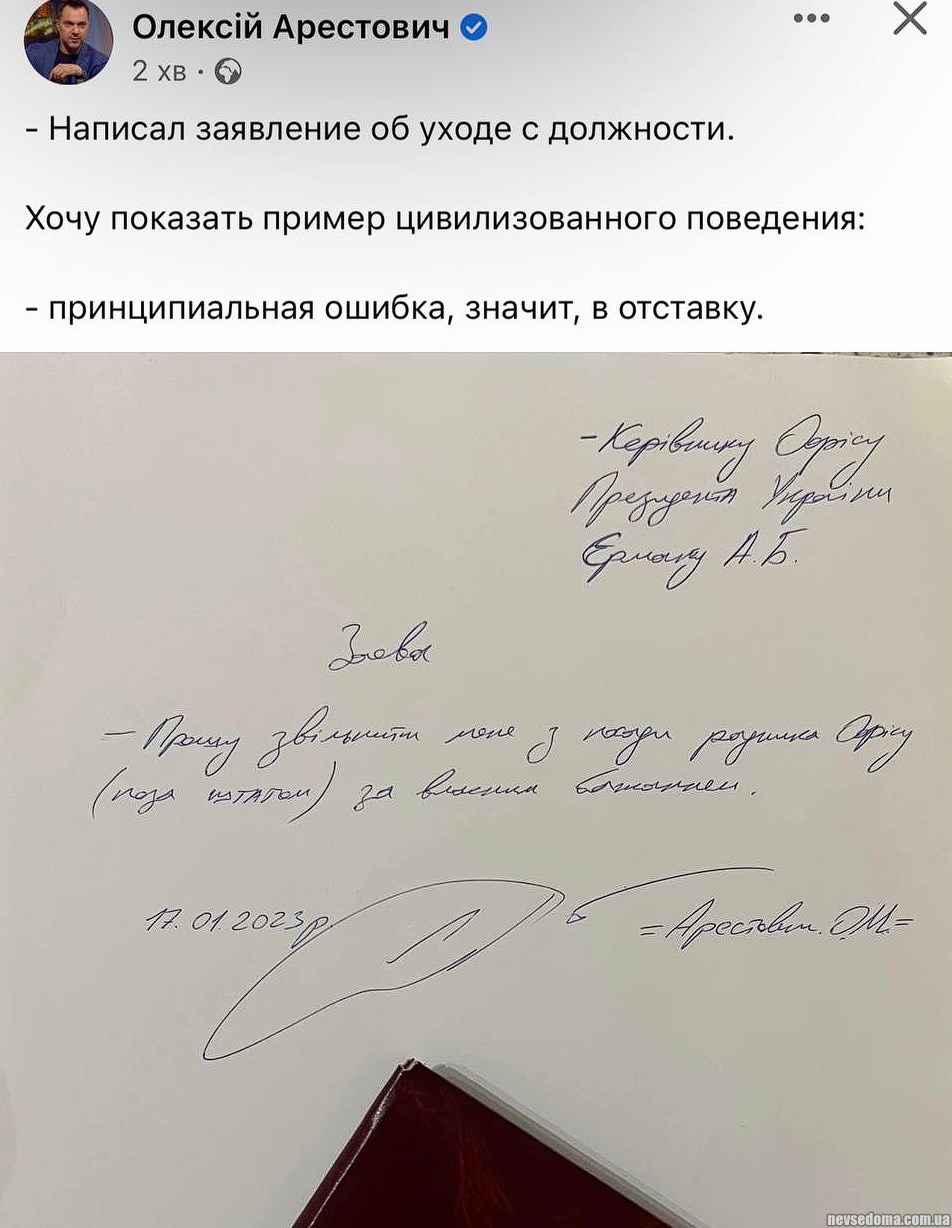 - The OP fired Arestovich from the post of non-staff adviser, — Press Secretary of the President Nikiforov.
