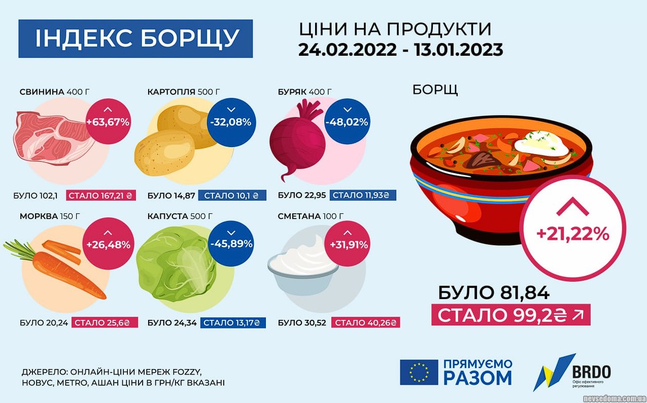 - For important news: borscht has risen in price by 21.2% over the 11 months of the war.