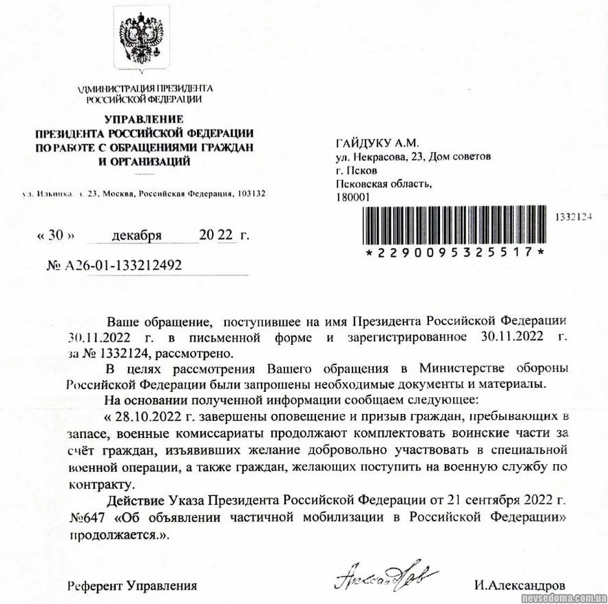 In response to an appeal from a Pskov deputy, it was reported that although the measures to call up "reserves" have been completed, the decree continues to operate.