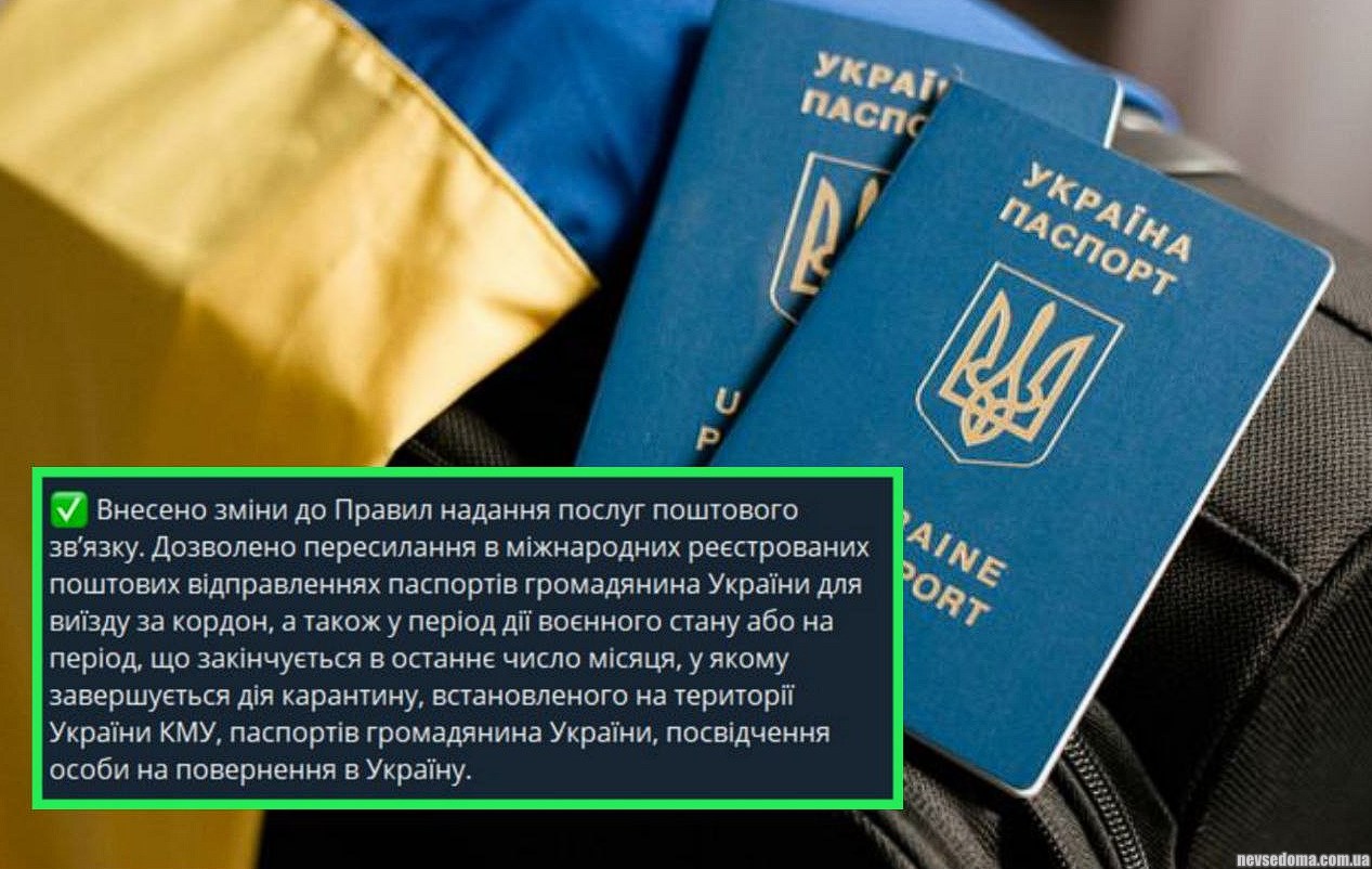- The Cabinet of Ministers of Ukraine allowed sending passports and other personal documents by mail.