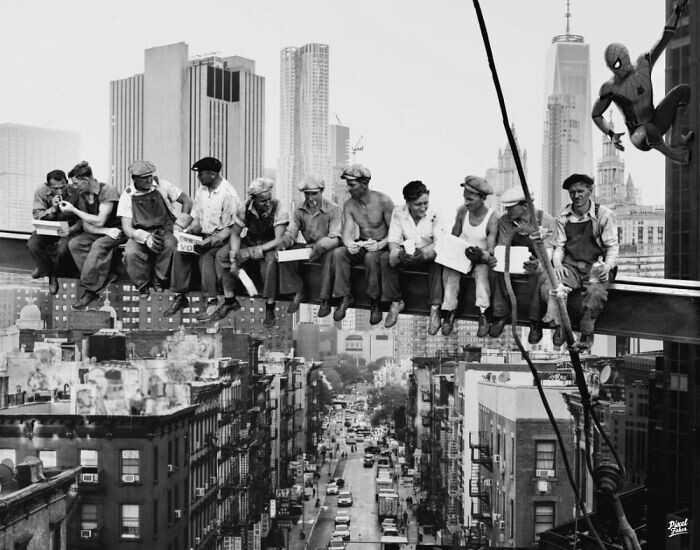 Famous snapshot "Lunch on a skyscraper" and Spider-Man
