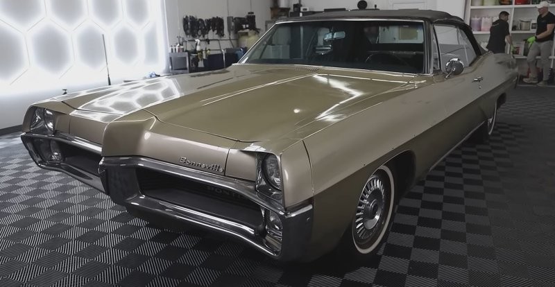 The 1967 Pontiac Bonneville is just that. Dirty, covered with thick dust, the copy looked sad. But only because it hasn't been washed in 40 years. The owner's nephew drove the car to detailing center, where it was washed, treated with various auto chemicals - and the car glowed.