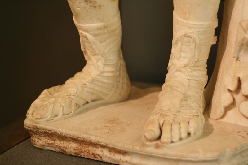 It is believed that the Greeks were the first to cut shoes separately for the right and left leg. Sandals were the most common type of footwear. long laces - fasteners, which were sometimes laced up to the knee.