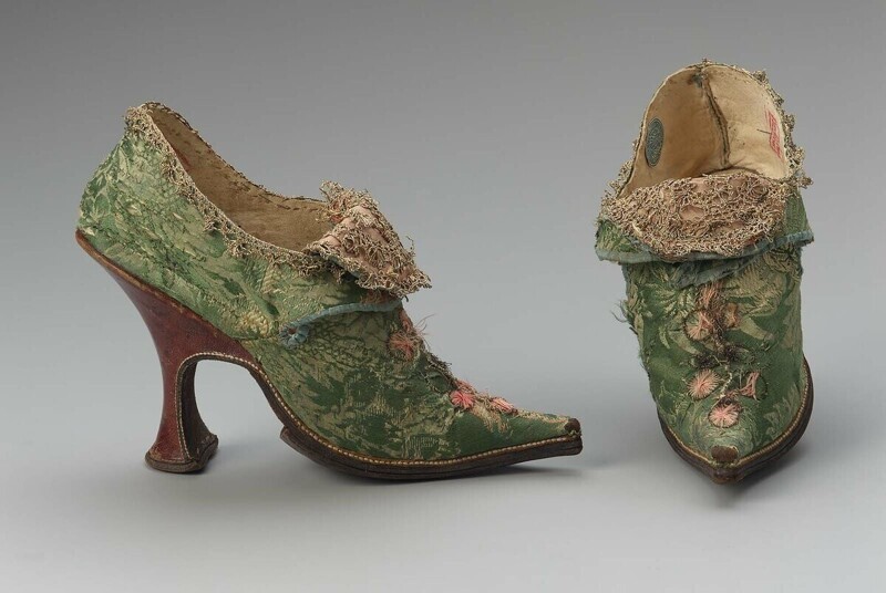 In the eighteenth century, heels began to lose popularity among men. One of the reasons why women wanted to wear high heels was that they wanted their legs to appear smaller and more elegant. At the same time, the socks were pointed to make them peek out from under a long dress, creating the illusion of a small foot.