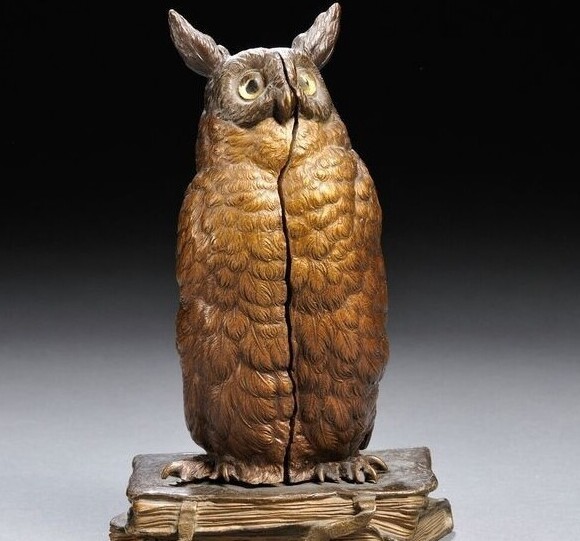 Like, for example, this owl is the work of the Austrian sculptor Franz Bergman. The owl is a symbol of wisdom. Additional reference - a stack of books, on which the bird nestled.