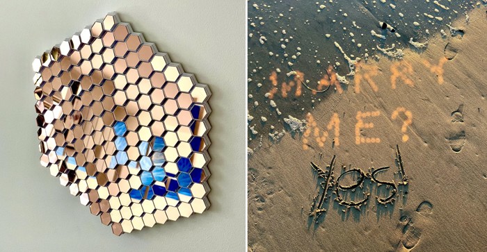 5. The guy created a mirror for the proposal: hexagons arranged so that exactly at sunset the reflected light is added to the words "Will you marry me?"