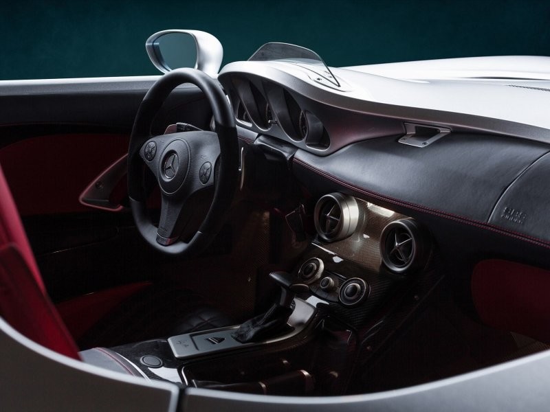 The main difference between this model and other SLRs was the complete the absence of both a roof and a windshield: their conditional replacement two helmets attached to each car were counted. At the same time, the speedster equipped with the same engine that was installed on the SLR McLaren 722 - this is a 5.5-liter V8 with 650 hp. Thanks to the lightweight carbon fiber body fully open supercar is able to reach 100 km / h in 3.5 seconds at a top speed of 350 km/h.