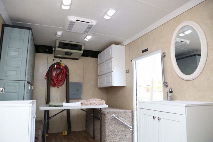The mobile shower also has two sinks and mirrors. Hygiene is one of the most difficult aspects of homeless life. However, compliance with the minimum hygiene is extremely important for them to keep themselves healthy.