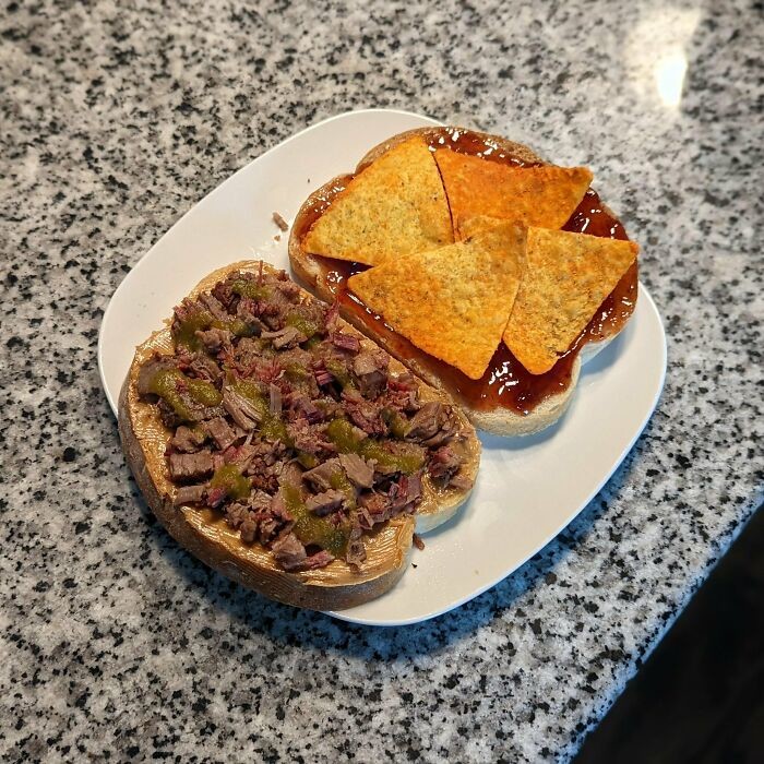 23. Jam Peanut Butter, Beef, Peppers, Bacon Bits and Nachos