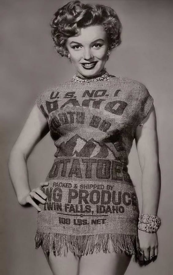 Monroe could not miss such a chance and decided to dress up just in potato sack. William Travila, costume designer, ripped such a bag of the company "Idaho Potatoes", sewed a dress, and then in the studio 20th Century Fox did a photo shoot for Marilyn.