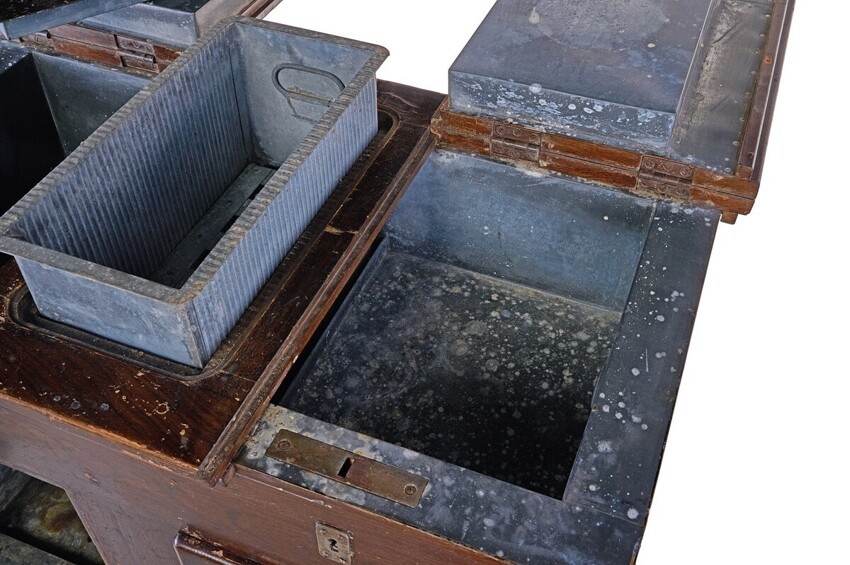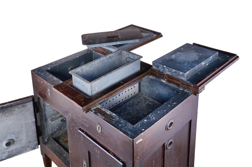 Inside such refrigerated cabinets there were special compartments for ice or snow.