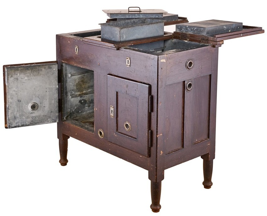 It was difficult to equip such a glacier in city apartments, and in the 17th-18th centuries, glacier cabinets appeared. Well crafted closet had ventilation but insulated the food inside from the heat outside. In that thick outer wooden walls served as insulation for the glacier, as well as steel and zinc panels of internal compartments.