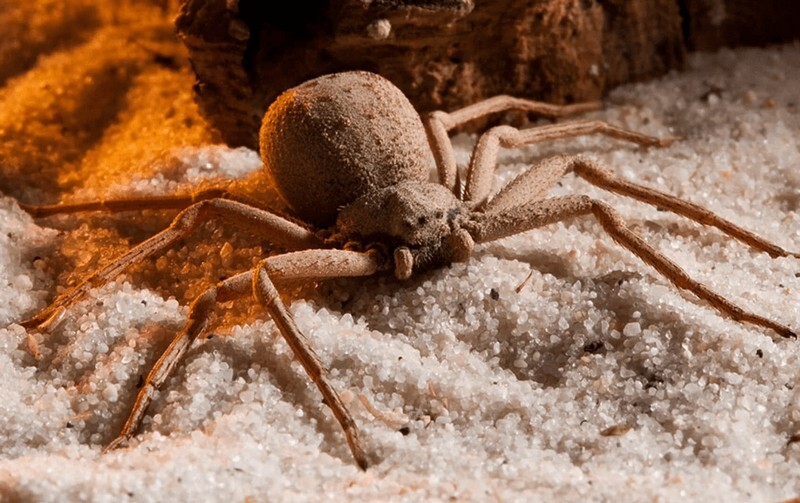 The most dangerous spider lives in the deserts, so meeting him unlikely. The appearance of the six-eyed sand spider is enough memorable, so confusing it with another species will not work. Body spider is painted in light gray, brown or dark yellow. All the body is covered with hard hairs.