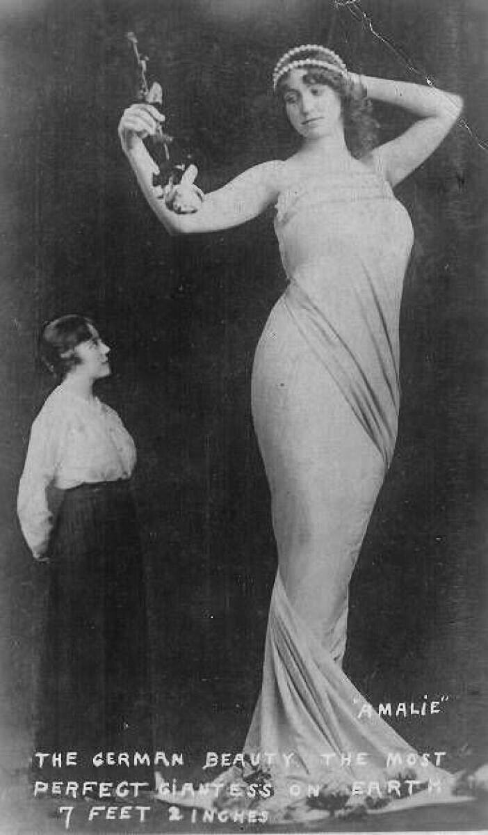 Next we have Amalia Schulte. The German woman who toured the famous Barnum Circus. According to various sources, it was argued that her height is then whether 214 cm or 219 cm.