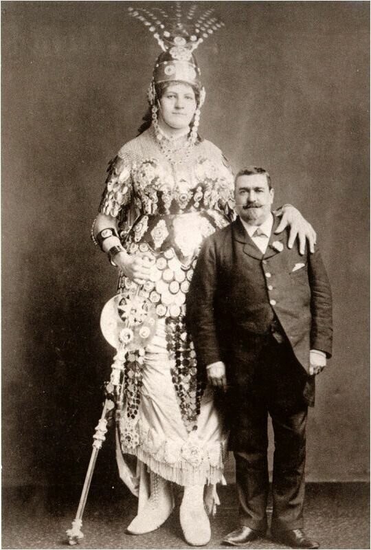 Pauline Marie Elisabeth Wede was born in Germany in 1866. She began touring Europe at the age of 16. In 1882 there was announced as the bride of the giant Joseph Drasal. Also known as "Giant Queen of the Amazons".