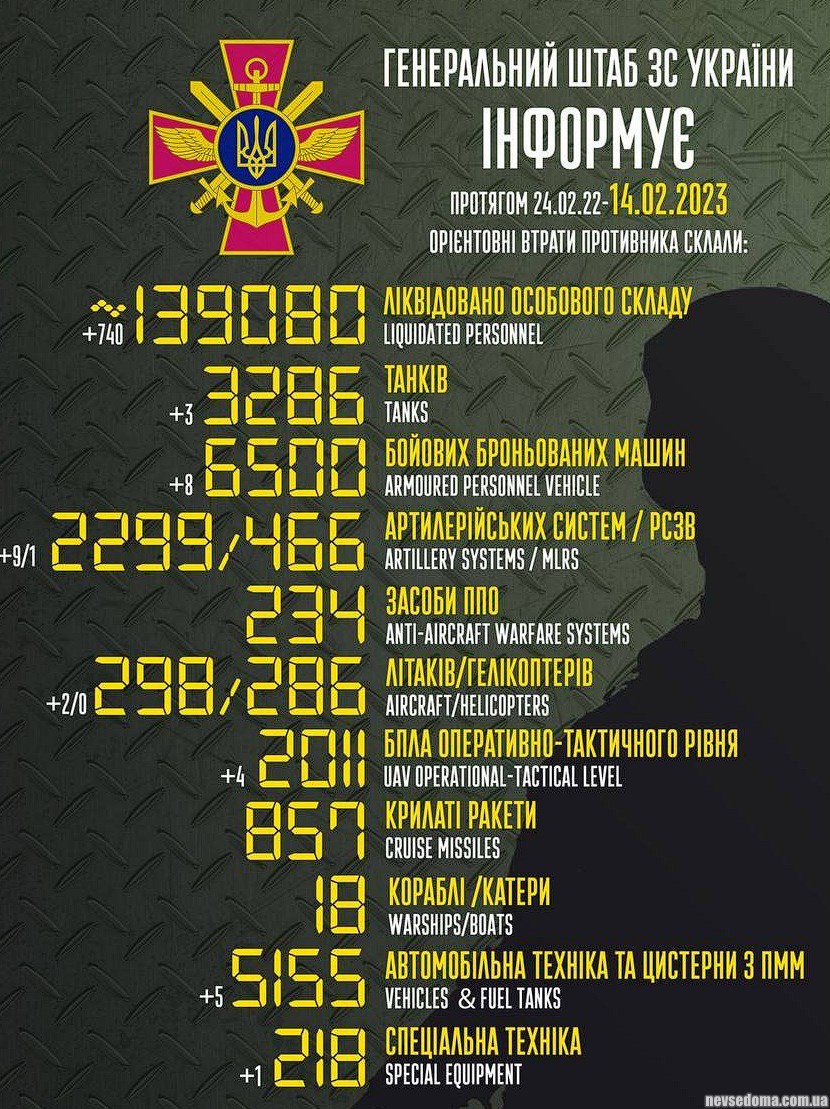 - #losses of invaders as of 02/14/2022